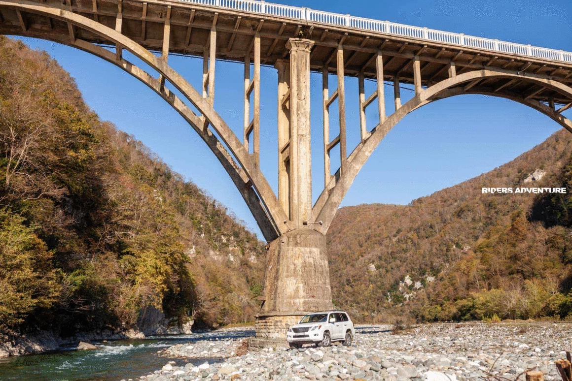 Проедете на внедорожнике по сложному горному серпантину к самым впечатляющим водопадам Абхазии - Великану и Ирине. Мощный поток Великана срывается с высоты 103 метра в узкое ущелье, а по стене ущелья проложена тропа, по которой вы пройдете прямо за низвергающимся потоком.