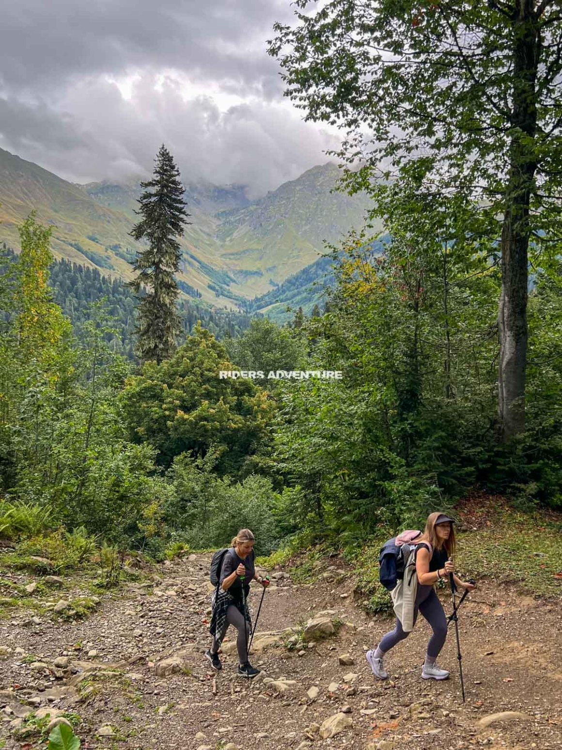 Поход на озеро Мзы — это живописная тропа через вековой высокогорный лес, которая плавно поднимается в зону альпийских лугов к зеркалу высокогорного озера, которое лежит под скалистыми склонами г. Ацетука.