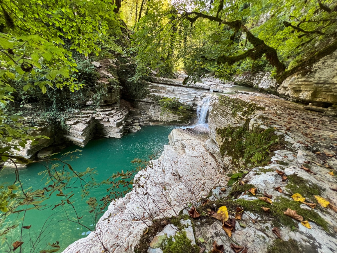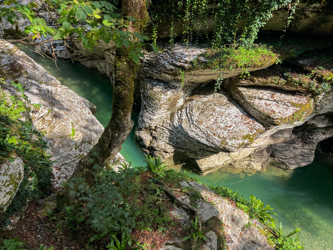 Вы пройдете сквозь реликтовую зелень каньона, зимой здесь цветут первоцветы и вода к реке наиболее прозрачная. Подниметесь на просторные луга, где пасутся коровы и кони. Пейзажи будто вы в Новой Зеландии.
